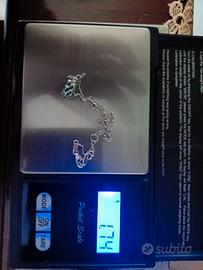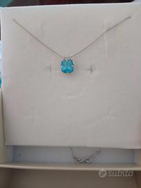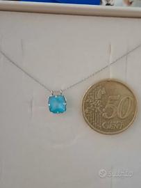 punto luce oro bianco 18 kt con pietra azzurra. la collana misura cm 42. indossata un paio di volte praticamente nuova. per peso e grandezza guardare le foto