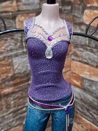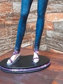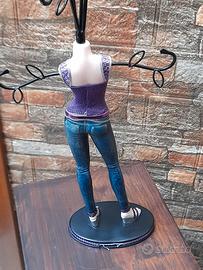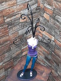 Pupazzo portagioie braccia e collo in ferro per appendere collane ,bracciali ecc ,mentre il bustocon maglietta in cotone con brillantini vari colori cinta in metallo ,jeans in ferro di colore jeans sandali viola con brillantini tutti integri base in ferro con nastro viola di pagliet e tutto in perfette condizioni manca solo dietro un pezzettino di nastro come in foto ,Misure altezza 40 cm da braccio a braccio 17 cm base 12 cm ,peso 4,40 grammi
