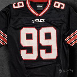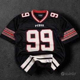 Pyrex Vision jersey originale nera con numero 99 fronte e retro 🔥 Stile football americano, perfetta per streetwear e outfit oversize. Tessuto mesh traforato leggero e traspirante. Taglia etichetta S ma veste M/L (fit oversize). Misure: spalle 46 cm, torace 52 cm, lunghezza 70 cm. Condizioni molto buone, lieve patina sulla stampa tipica vintage. Ideale per streetwear, Y2K, layering. Disponibile spedizione. Sconto per acquisti multipli.