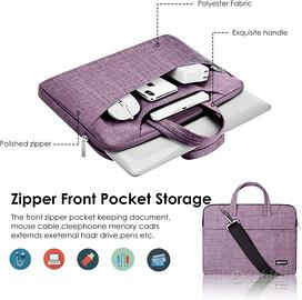Qishare - Borsa per computer portatile lilla da 13 pollici a 13.3 e 14 pollici, da uomo e donna, tracolla regolabile e manico occultabile, raccoglitore per documenti, impermeabile
