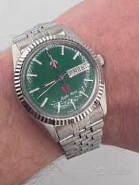 vendo bellissimo e magnifico orologio rado automatico. una bellezza estrema. orologio perfettamente funzionante condizioni eccezionali impeccabili tutto originale braccialato movimento eta 2472 quadrante verde. vivo accesso. bracciale jubilee veramente un bellissimo aquisto cassa 36 mm escluso corona