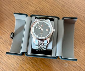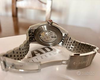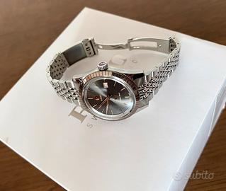 Vendo bellissimo Rado Golden Horse referenza R33100103 in condizioni meravigliose (segni di usura impercettibili) anno 2024 set completo scatola, garanzia e astuccio da viaggio. Disponibile per consegna a mano zona Torino sud o spedizione assicurata gestita da me. Pagamenti preferiti contanti alla consegna o bonifico (ci si può accordare anche con PayPal o Satispay). Vista la cifra non accetto transazioni con tutto subito. Caratteristiche principali: Genere: uomo/unisex Movimento: automatico, ETA C07.611 Funzione: tempo e data, 80 ore riserva di carica Materiale cassa: acciaio INOX by Rado Diametro e spessore cassa: 41.8 mm x 10.4 mm Fondo cassa: trasparente, vetro zaffiro Ghiera: ceramica hi-tech al plasma Quadrante: grigio lucido, indici a bastone e lancette rivestite in SuperLuminova, simbolo “Golden Horse” ore 6 Bracciale: acciaio INOX by Rado Impermeabilità: 5 BAR (circa 50 metri). Richiesta euro 1550 leggermente trattabili (listino nel 2024 2500 euro) ‼️