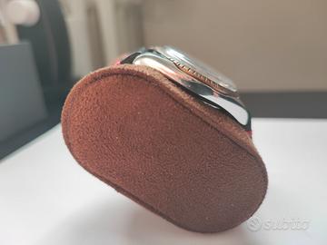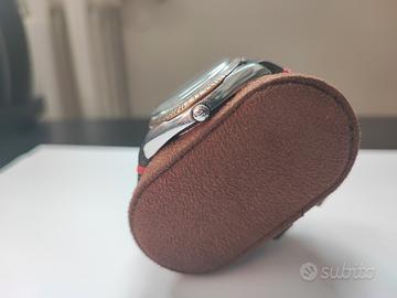Particolare e raro orologio Rado Voyager con cassa in acciaio (36mm corona esclusa, 38 corona compresa) e lunetta in bronzo con la tipica patina da ossidazione. Referenza 636.3582.4 Quadrante nero privo di segni, vetro plexi perfetto. Corona originale e logata. Fondello a vite. Movimento a carica automatica ETA 2836-2 perfettamente funzionante e revisionato a gennaio 2024. Precisissimo e con scatto rapido della data regolarmente operativo. Venduto con cinturino in pelle Rios 1931. Prezzo leggermente trattabile. Non rispondo ad offerte ridicole e richieste di "ultimo/miglior prezzo".