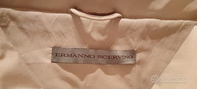 Piumino color crema con collo ampio alto e avvolgente, sfiancato in vita ,chiusura bottoni e fiocchi. Tg 46 ma veste una taglia 42 /44.Offre un look elegante , raffinato questo capo è firmato Ermanno Scervino!
