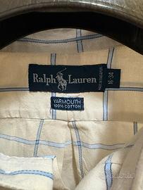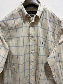 Camicia RALPH LAUREN modello Yarmouth in cotone 100%. Colore beige con motivo a quadri blu e logo Polo ricamato sul petto.