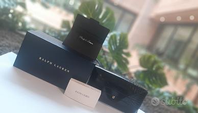 Ralph Lauren Custodia Occhiali Sole Originale con Scatola, Panno e Libretto Originale - Nuova mai usata • Custodia rigida nera effetto coccodrillo, con logo "Ralph Lauren" all'interno • Dimensioni custodia: circa 16,5 x 8 x 6 cm • Scatola originale blu scuro con logo argentato: circa 19 x 10 x 7 cm • Inclusi: panno per la pulizia (nuovo, con logo) e libretto informativo Ralph Lauren • Tutto originale, Nuovo mai utilizzato – condizioni perfette Spedizione veloce e accurata. RL9