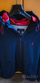 Giacca leggera con cappuccio (Lightweight-hooded-jacket) di Ralph Lauren vendo per inutilizzo. Taglia XL, blu scuro (Navy) con accenti rossi. Cappuccio, tasche laterali con zip, velcro aggiustabile sui polsini, cerniera rovesciata (look piatto), impermeabile. Usata poche volte: non mostra alcun segno di usura.