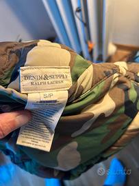 PIUMINO SMANICATO PIUMA D'OCA DOUBLE FACE (REVERSIBILE) CON SOALLONE SCAMOSCIATO SUL VERDE MILITARE E ALTRA VERSIONE CAMOUFLAGE ORIGINALE RALPH LAUREN LINEA DENIM & SUPPLY TAGLIA S