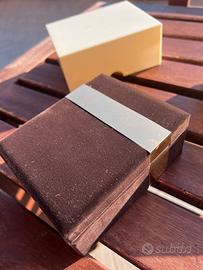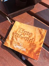 Scatola rara in velluto marrone e oro omega controscatola logato in plastica con timbro Becucci Bologna Porta garanzia con scritta Time in gold Condizioni eccellenti