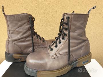 Bellissimi anfibi CULT in edizione limitata, collezione autunno inverno 2013/2014. In morbidissima pelle colore tra grigio e sfumatura melanzana, doppia chiusura lacci e zip, fantasia mimetica sulla suola, puntale con rinforzo interno.