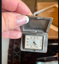 ARTICOLO RARO: PREGIATISSIMO orologio da viaggio/taschino VULCAIN pieghevole in cassa d'argento cifrata. Stile ART DECO, antico riconducibile fine 800 primi 900. Prodotto dalla manifattura svizzera Vulcain, fondata nel 1858 e nota per i suoi movimenti meccanici unici. Presenta una cassa rettangolare con lavorazione a martelletto. Quadrante color ostrica.