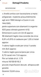 bellissimo e unico anello a cuore vintage oro rubini diamanti TUTTI I DETTAGLI NELL'ULTIMA FOTO Trattabile Consegna a mano Roma IKEA Anagnina