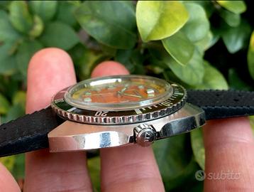 Cassa in acciaio mai lucidata da 44 millimetri ad esclusione della corona di carica,dial con indici al trizio e sfere originali,corona originale doppio scatto ok,datario ad ore tre ok,ghiera girevole perfettamente funzionante senza scatti come da specifiche dell’epoca,fondello a vite,vetro originale,movimento originale marcato citizen Japan cal.7270 con 21 rubini con possibilità di carica manuale perfettamente funzionante con buona tenuta del tempo e riserva di carica,NON possiedo scatola e garanzia