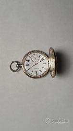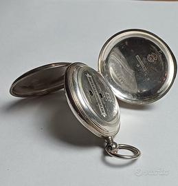 Incredibile orologio da tasca d'epoca della celebre maison svizzera H. Moser & Cie, storicamente nota per essere stata la fornitrice ufficiale della corte imperiale russa. Questo pezzo si distingue per la sua cassa in argento massiccio con il raro punzone "84" zolotnik, corrispondente al titolo 0.875, ed è impreziosito da splendide lancette in oro finemente traforate che risaltano su un quadrante in smalto bianco perfettamente conservato. L'orologio è animato da un movimento meccanico a carica manuale di altissima precisione, denominato "Qualité Boutte", dotato di scappamento ad ancora e testimoniato dalle numerose medaglie incise sulla cuvette interna che celebrano i successi storici della manifattura. Si tratta di un esemplare autentico e regolarmente funzionante, ideale per chi cerca un oggetto che unisca l'eccellenza dell'orologeria meccanica svizzera a un valore storico e materico di altissimo livello, rendendolo un investimento sicuro per ogni collezionista.