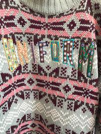 Ciò che rende questo pezzo davvero speciale è la scritta "UNIFORM" ricamata sul davanti, con ogni lettera impreziosita da un design floreale e decorativo unico. Questo dettaglio artigianale aggiunge un tocco di originalità e raffinatezza, elevando il maglione da semplice capo d'abbigliamento a vera e propria dichiarazione di stile.