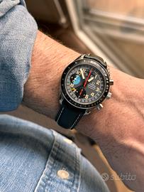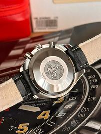 Se ti piacciono gli orologi vintage segui pure la mia pagina Instagram - Dimawatches - dove pubblico di volta in volta tutti i miei pezzi Prezzo pressocchè non trattabile Questo magnifico orologio nasce nel 1996 sotto la buona stella di un grandissimo campione di Formula 1,Michael Schumacher,all’epoca già vincitore di 2 mondiali ed ambasciatore Omega. Omega Speedmaster Day Date Calendar Ref 3820.52.26 Questo splendido orologio si ispira al Flightmaster del 1969,cronografo per piloti,che come vedrete in foto aveva anch’esso diversi contatori e sfere di colori differenti. L’omega Speedmaster ha reinterpretato questo schema con l'indicazione giorno-notte blu e nera per i piccoli secondi ed ha mescolato i colori con sapienza,blu,giallo e rosso sono in una combinazione perfetta. Mosso dal Calibro 1151 Automatico basato sul Valjoux 7751 Movimento cronografico con finitura radiata Vetro zaffiro con trattamento antiriflesso Cassa acciaio da 39 mm Numeri arabi al trizio Cinturino in pelle generico con fibbia originale Condizioni fantastiche,guardate anche cassa e fondello,sembra quasi appena uscito dalla boutique. Unico segno del tempo visibile è sul vetro,a seconda della luce si scorge una specie di piccolo Non spedisco con Tutto Subito o Poste Italiane Molto Gradito ritiro a mano Non sono interessato a scambi con Cartier,Longines,Zenith,Seiko,Lanco,Tissot,Citizen,Bulova,Swatch,Eberhard,Oris,Squale,Doxa