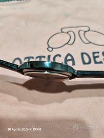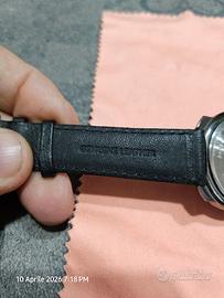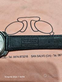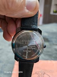 PER COLLEZIONISTI E AMANTI DEL VINTAGE: Proponiamo un pezzo iconico della collaborazione tra United Colors of Benetton e BULOVA. Non si tratta di una semplice rimanenza, ma di un vero Fondo di Magazzino (NOS - New Old Stock) in condizioni incredibili, che conserva ancora l'anima pop degli anni '90. PUNTI DI FORZA UNICI: PELLICOLA ORIGINALE: Il fondello in acciaio conserva ancora la pellicola protettiva di fabbrica, mai rimossa. Garanzia assoluta che l'orologio non è mai stato indossato. STATO DI CONSERVAZIONE: Eccellente. Cassa lucida, vetro intonso e cinturino originale in pelle nera mai piegato. MOVIMENTO BULOVA: Qualità garantita dalla casa madre Bulova; batteria appena sostituita per garantirne l'immediato utilizzo. DESIGN: Quadrante artistico "Black & White" con font numerici a contrasto giallo/rosso. Un capolavoro di estetica postmoderna. SCHEDA TECNICA: Brand: Benetton by Bulova (Originale dell'epoca). Movimento: Quarzo alta precisione. Cinturino: Vera pelle originale marchiata Benetton. Fondello: Acciaio inossidabile con protezione originale. Funzionamento: 100% testato con batteria nuova. CONDIZIONI DI VENDITA: L'orologio è esattamente quello mostrato in foto. Trattandosi di un fondo di magazzino di oltre 30 anni, è una rarità trovarlo in questo stato di preservazione.