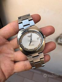Metti le mani su questo affascinante orologio vintage Longines Admiral Ultronic, un vero pezzo da collezione con un design iconico degli anni '70. Questo modello si distingue per la sua cassa robusta e il bracciale integrato in acciaio e placcato oro (o tonalità oro, a seconda del materiale specifico), che gli conferiscono un aspetto audace e distintivo. Il quadrante argentato (o champagne, a seconda della percezione) con indici applicati e la finestra della data a ore 3 completano il look elegante e senza tempo.