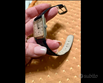ARTICOLO RARO: PREGIATO orologio da polso UNIVERSAL GENEVE TANK con cassa quadrata argentata e quadrante bianco, cinturino in coccodrillo praticamente nuovo. VINTAGE riconducibile anni '30/40. Da COLLEZIONE. Questo Universal Genève Tank è indicativo dei canoni estetici dell’epoca nello stile della Universal Genève. La cassa argentata misura 26,6 mm di larghezza (esclusa la corona) e 33 mm di lunghezza (comprese le anse). La forma rettangolare della cassa, dalle linee pulite, incarna il classico design a tank, con un’estetica senza tempo. La cassa, firmata e numerata, è in ottime condizioni e presenta solo lievi tracce d’uso. Il quadrante originale ha la tipica eleganza dello stile Ard-Deco, con sottili indici e lancette a bastone che garantiscono un’eccellente leggibilità.