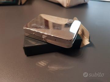 scatolina con all'interno un rasoio "da viaggio" in argento 925 (allegato garanzia di autenticità) con specchio e lametta. ideale come regalo