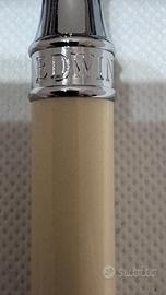 Rasoio di sicurezza Edwin Jagger DE87BL con finitura cromata e manico beige imitazione avorio. Lunghezza manico 88mm - lunghezza totale 96mm - peso 65,5gr. Si presenta in eccellenti condizioni, no graffi, no ammaccature, no residui, no scatola. Adatto ai neofiti o per le sbarbate quotidiane. Lo stand rappresentato nelle fotografie non è in vendita.