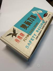 Rasoio di sicurezza Flying Eagle vintage anni ’60 in scatola di latta originale.