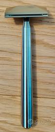 Rasoio Di Sicurezza in Titanio TITANER TiGlide S1 in condizioni nuove. Eccedenza da campagna Kickstarter. Costruito completamente in Titanio è leggero e resistente ad ogni tipo di corrosione. Linea moderna e pulita, testa magnetica per facilitare il posizionamento della lametta e vite di fissaggio posteriore. In omaggio 10 mezze lame di acciaio svedese. RRP 150