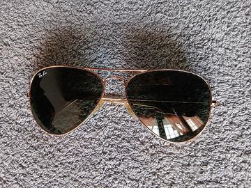Rayban modello Aviator, misura large 58 / 14, montatura color oro, lenti verdi. Ray-ban completi di custodia, libretto e pezza. Classico modello rayban intramontabile!
