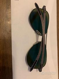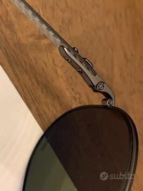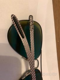 Occhiali da sole con lenti colorate polarizzate, protezione 100% UVA UVB. Montatura in metallo, aste in fibra di carbonio. Il codice stampato sull'astina è visibile ingrandendo la foto, purtroppo non sono riuscita a fare una foto migliore. Fate riferimento al modello Rey Ban Chromance Collection RB8317CH 029/A1. Sono provvisti della loro custodia e del certificato di autenticità. Indossati solo per prova in negozio, integri in ogni loro parte, se volete foto più dettagliate basta chiedere.