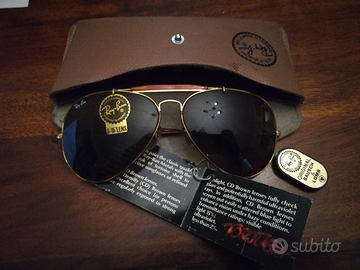 Occhiali da sole RAY BAN mod TORTUGA G15 AVIATOR VINTAGE B&L 62/14 anni 70/80 made in USA, lenti smarcate BL, montatura con incisione originale made in USA come si vede in foto. Usati pochissimo come nuovi. Con targhetta etichetta ed astuccio originale. Euro 400. Possibile spedizione pacco tracciabile economica con ritiro in locker point Italia ed estero dove abilitato il servizio