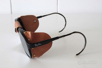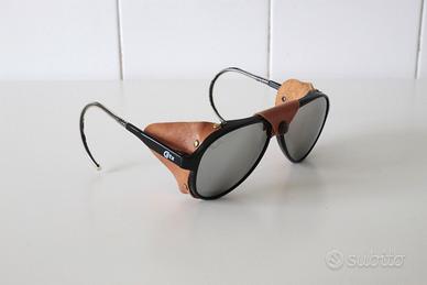 Occhiali da montagna con lenti calibro 58 con incisioni BL ai lati perfette, montatura con inserti in pelle completamente intonsi.