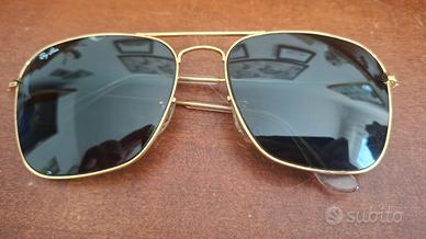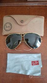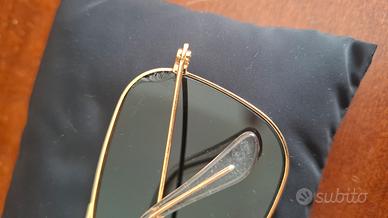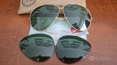 lotto 2 occhiali da sole Rayban, uno degli anni 80 con lenti di ricambio (di cui una leggermente rovinata) con custodia, l'altro più recente con qualche segno di usura e una lente leggermente graffiata, a disposizione per altre eventuali foto