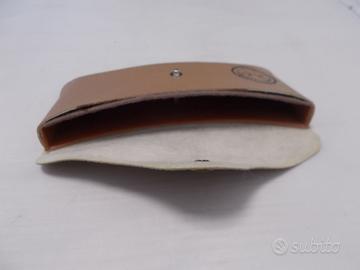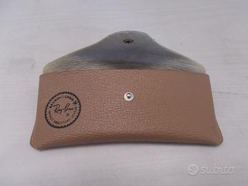 Ray Ban Custodia portaocchiali "VINTAGE" "SEMINUOVA" Custodia similpelle morbida per occhiali con interno scomparto rigido per occhiale pieghevole, chiusura a clip. Astuccio portaocchiali leggere e impermeabile Dimensioni : 14x7 cm circa Colore : marrone Genere UNISEX Senza confezione ORIGINALE