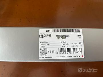 Vendo splendidi Ray-Ban Mega Wayfarer ORB0840S, reinterpretazione moderna dell’iconico modello Wayfarer, in versione large per un look ancora più deciso e contemporaneo. 🔹 Dettagli prodotto: •Modello: ORB0840S – Mega Wayfarer •Colore montatura: Polished Black (nero lucido) •Lenti: Green G15 (verde classico Ray-Ban) •Condizioni: Nuovi, mai indossati •Produzione: Made in Italy •Completi di confezione originale