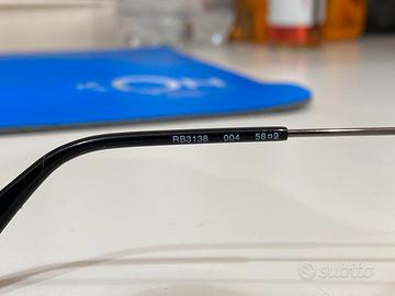 Ray-Ban mod. Shooter RB3138 004 58-09 in total black con occhiello al centro della montatura 100% originali completi della propria custodia. Occhiali iconici in edizione limitata ormai fuori produzione tenuti perfettamente senza nessun graffio per amanti del vintage anni 2000 appassionati del genere.