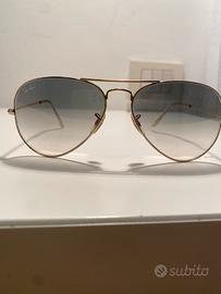Vendo occhiali Rayban modello Aviator, lente originale, intatta, chiari (lenti trasparenti sfumate chiare). Una delle astine è lievemente sollevata ma sistemabile presso un qualsiasi negozio di occhiali. Disponibilo con la loro custodia originale.