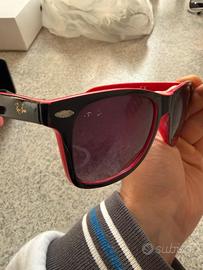 Ray-Ban Occhiali da sole Wayfarer. Presentano graffi e segni di usura. Aste nere e rosa.