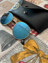modello Ray-Ban ROUND METAL COLORE MONTATURA: Lucido Oro Rosé MATERIALE MONTATURA: Metallo COLORE ASTE: Oro Rosé COLORE LENTE: Specchio Blu nuovi mai usati regalati per un compleanno, ORIGINALI come si può vedere dalle incisioni sulle lenti prezzo trattabile, ma non perdi tempo