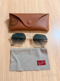 Ray Ban Octagonal Classic Oro Arista e lente Blu sfumata