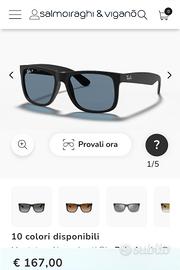 Vendo bellissimi occhiali RayBan modello Justin con lenti polarizzate blu...