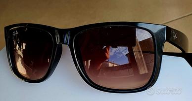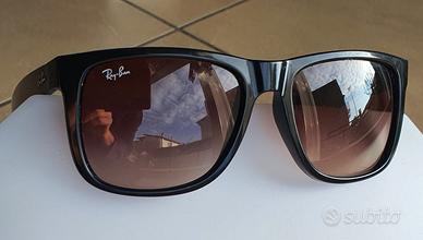 Occhiali da sole Rayban Justin RB 4165 54-16 con montatura nera e lenti marroni sfumate ray ban, aste con protezione interna sulla scritta per farla resistere di più.