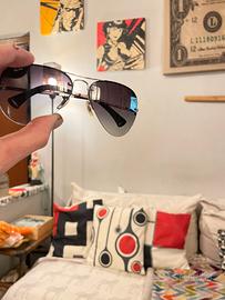 Ray-Ban RB3449 è un occhiale da sole Pilot della celebre linea Ray-Ban Aviator. Aviator è il celebre modello nato negli anni ‘30 e che, di stagione in stagione, viene rinnovato con colori, materiali e dettagli mantenendo però saldo lo stile military e iconico con cui è nato. Nonostante Aviator sia degli anni ’30 la montatura è ancora estremamente attuale e senza tempo con il suo stile unico e la lente a goccia oversize. RB3449 è un pilot Aviator moderno che si distingue per la versione semicerchiata che lascia, quindi, la lente libera; oltre a questo, ad arricchire la montatura troviamo gli occhielli a freccia per fissare le aste in metallo dorato. Leggerissimi da indossare ed estremamente funzionali, questi occhiali da sole sono declinati in tanti colori e sono perfetti sia sul viso di un uomo che su quello di una donna che ama questo tipo di montatura. Integrano la linea Aviator aggiornando l’occhiale da sole più celebre del 1937 chiamato “Large Metal Aviator” grazie al nuovo design a semi cerchio; leggerissimi e con aste sottili riescono ad unire lo stile militare a quello sportivo in una versione ancora più cool di quella leggendaria. Disponibile con lenti a specchio o polarizzate, garantiscono una visione perfetta senza riflessi e riverberi proteggendo lo sguardo dai raggi UVA, UVB e dalla luce blu.
