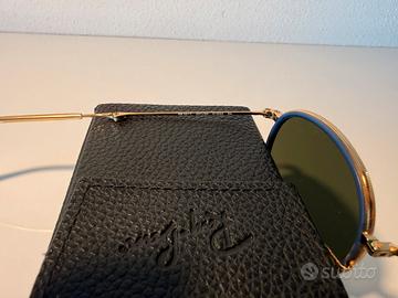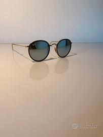 Vendo splendidi Ray-Ban Round Folding (Modello RB3517 001/30), l'iconico modello tondo nella sua esclusiva versione pieghevole. Un mix perfetto di stile vintage e praticità ingegneristica. Dettagli dell'articolo: Condizioni: Ottime. Gli occhiali sono stati usati con cura, non presentano graffi sulle lenti né segni d'usura sulla montatura che ne compromettono l'estetica o l'utilizzo. Design: Montatura in metallo color oro con raffinati inserti in acetato blu attorno alle lenti. Lenti: Cristallo di alta qualità con finitura leggermente specchiata, perfette per ogni condizione di luce. Peculiarità: Si ripiegano completamente su se stessi, diventando ultra-compatti per essere riposti comodamente in tasca o in borse piccole. Accessori inclusi: Custodia originale Ray-Ban specifica per modello Folding (pelle nera). Panno in microfibra originale. Disponibile per spedizione o consegna a mano. Un classico intramontabile in una colorazione difficile da trovare!