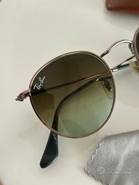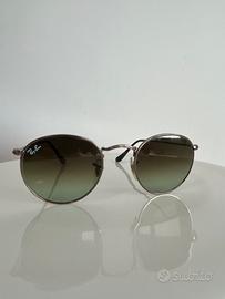 Vendo bellissimi occhiali da sole Ray-Ban Round Metal con montatura argento/canna di fucile e lenti verdi sfumate. Un modello senza tempo che si adatta a ogni outfit. Gli occhiali sono completi di tutto il loro set originale: • Custodia rigida in similpelle marrone (marchiata Ray-Ban). • Panno in microfibra grigio originale. Condizioni: Gli occhiali sono in ottime condizioni generali. Le lenti sono ben tenute e la struttura è solida. ⚠️ Nota bene: Come visibile in foto, è presente un piccolo segno di usura sulla parte terminale dell'astina sinistra (il poggiarechio in plastica nera). È un difetto puramente estetico che non pregiudica assolutamente l'utilizzo o il comfort una volta indossati. Dettagli: • Marca: Ray-Ban • Modello: Round Metal • Colore Montatura: Bronze / Metal • Colore Lenti: Verde sfumato • Genere: Unisex Spedizione rapida e imballaggio super accurato per proteggere le lenti! 📦