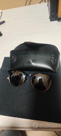 Occhiali da sole Ray-Ban Scuderia Ferrari. - Modello RB8327M. - Montatura nera con dettagli oro. - Lenti a specchio. - Originali al 100%