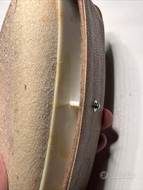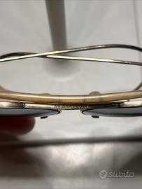 Ray Ban Shooter G31 DGM Rara combinazione shooter con lenti a doppia specchiatura e sfumatura centrale. L’occhiale è in ottime condizioni fatta eccezione per delle piccole crepe nel parasudore che ho evidenziato in foto e per dei graffi superficiali sul trattamento specchiato. I graffi sono visibili soltanto in controluce e non interferiscono minimamente con la visione in quanto molto superificiali. La custodia è originale dell’epoca ed ha una piccola crepa nella parte di plastica come mostrato in foto.