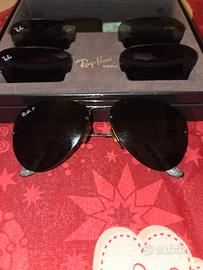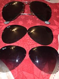 ray ban aviator con set di 3 lenti intercambiabili. montatura leggerissima pezzo veramente unico con piccoli segni di usura fisiologici e scatola rotta da un lato ma chiudibile