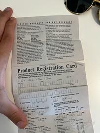 Completi di custodia originale in pelle nera con logo dorato e certificato/registration card vintage.