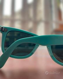Occhiali da sole Ray-Ban Wayfarer originali, Made in Italy. Modello classico con esclusiva colorazione azzurra, perfetto per uno stile unico e alla moda. Lenti con protezione UV per comfort visivo eccezionale. In ottime condizioni, completi di custodia originale per una protezione ideale. Eleganti e distintivi.