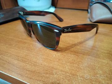 Ray-ban Wayfarer II vintage anni 80 con montatura in acetato marrone tartarugato e lenti verde scuro misura 54mm (la più grande). Occhiali perfettamente utilizzabili. Prezzo leggermente trattabile